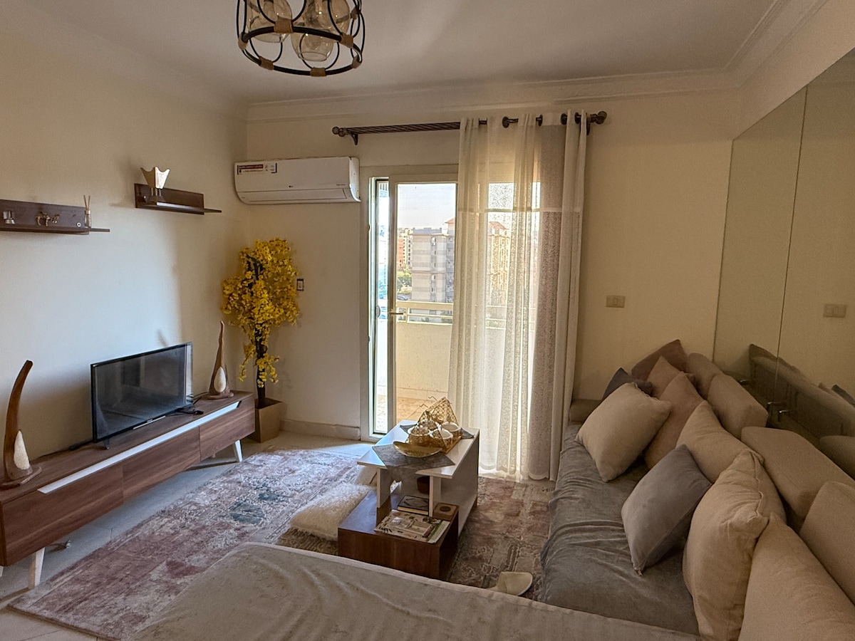 Stylish Studio Apartment in a Prime Location This fully air-conditioned, elegantly furnished studio is located near New Cairo, Nasr City, Maadi, and Heliopolis , downtown Cairo, and next to the International Convention Center. Situated in a secure compound with 24/7 security, it offers modern amenities, high-speed internet, and a fully equipped kitchen. Surrounded by renowned restaurants, cafés, and essential services, it ensures a comfortable stay for both short and long-term guests.