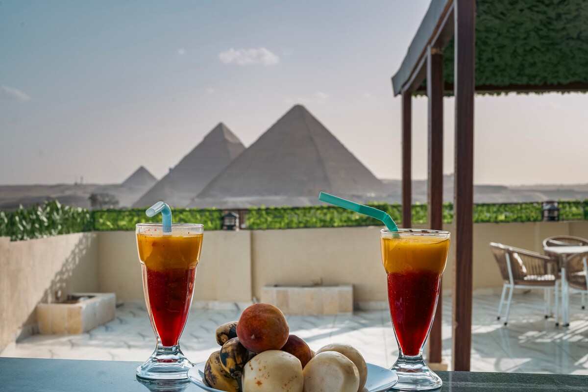 Střešní byt s výhledem na pyramidy a sfingu. Obrovská soukromá terasa s pohovkou a stolem a speciálním tradičním místem k pobytu, odpočinku a vychutnání si nádherného výhledu. Zabezpečené vstupní dveře. Kuchyně plně vybavená. Obývací pokoj s chytrou televizí. 1 samostatná toaleta a 1 velká koupelna se sprchou a 2 umyvadly. 2 pokoje, 1 velký s manželskou postelí, klimatizací a chytrou TV a 1 s dvojlůžkem. Celý byt je celý nový. Přijď si užít výjimečný pobyt u nás. Není zač.☀️☘️