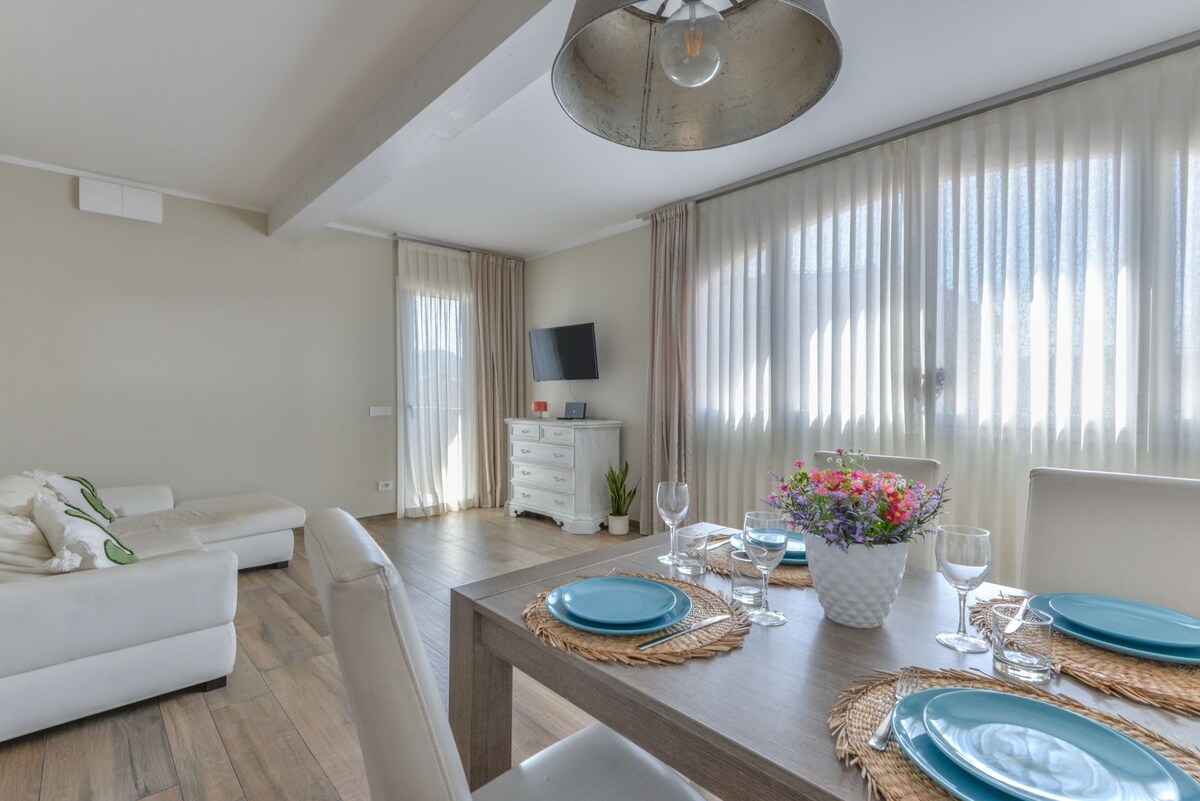Attico con sauna e piscina privata riscaldata con copertura termica. Disponibile in inverno su richiesta, stufa a pellet e piscina per circuito Kneipp. 5 minuti a piedi dal centro e dalla spiaggia della Pianotta. 4 camere matrimoniali, di cui 3 con terzo letto apribile, grande soggiorno con divano letto, tre bagni, lavanderia, WIFI. Salotto e zona pranzo x 12 all'aperto con barbecue Weber. Piscina privata ad uso esclusivo con sauna, doccia solare, cinema all'aperto e letti balinesi.
