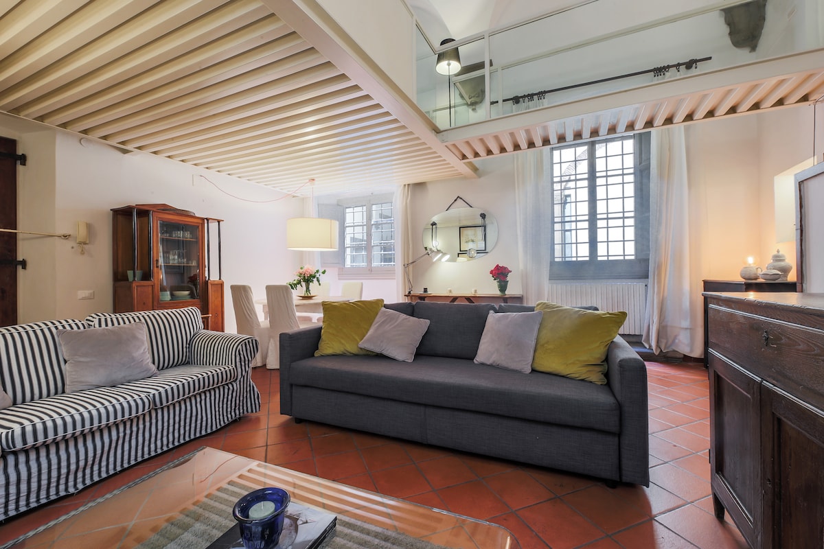 Celý loft / apartmán ve stylu renesance v přízemí v historickém centru Florencie, 50 m od náměstí Piazza Santa Croce, uprostřed městského života. Tento loft, postavený v roce 1450, představuje spojení moderního a starověkého. Palác je starobylým sídlem rodiny Mona Lisy. Hlavní pokoj s velmi vysokým stropem a klavírem je srdcem domu. Byt je velmi útulný a zařízený. Za dřívější nebo pozdější příjezd se účtuje příplatek 15 €.