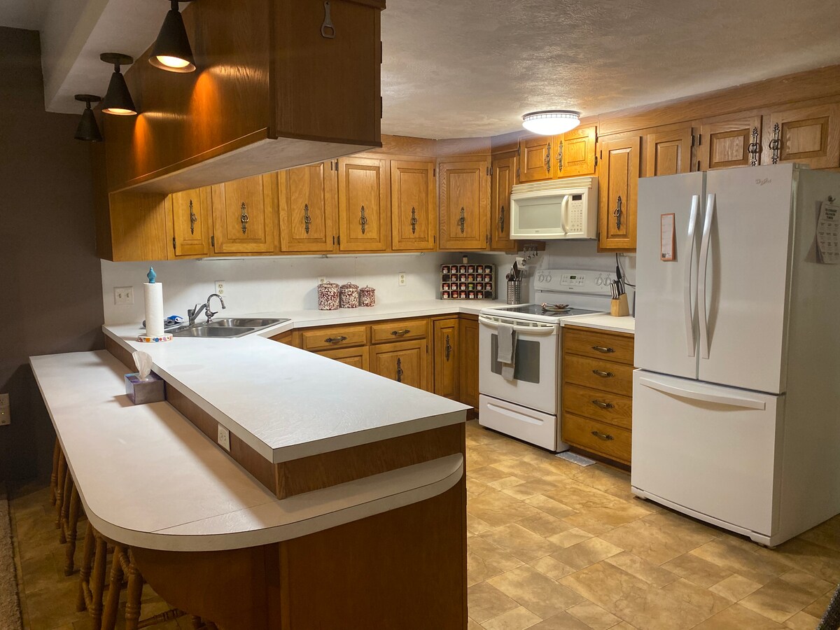 Naším cílem je, aby váš „jen jeden další pobyt“ byl příjemný a příjemný. Jsme tady pro tebe, ať už navštěvuješ rodinu, lovíš nebo hledáš relaxační víkend v Enders Reservoir. Nabízíme 4 ložnice (2 s manželskou postelí, 2 s plnou postelí + přistýlka a dětská postýlka). K dispozici jsou 2 koupelny. Kuchyně je plně vybavena pro vaření během vaší návštěvy, kde si můžete vychutnat kuchyňský kout nebo jídelní kout. V ceně je pračka/sušička s pracím prostředkem. Zákaz kouření a domácích mazlíčků uvnitř domu. K dispozici je venkovní kotec/psí bouda.