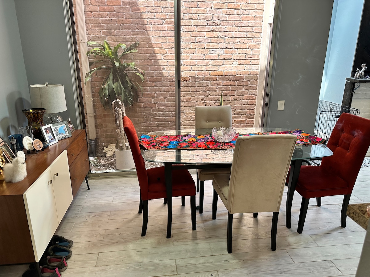 Vítej v našem soukromém garsonce! Máš 1 BEZPLATNÉ parkovací místo, parkování na ulici podél Commonwealthu. Zažij potěšení z našich luxusních povrchových úprav, vynikající zákaznický servis. Naše lokalita je ideálním pobytem pro zdravotní sestry na cestách, je snadné prozkoumat vše, co Houston nabízí. Prostor Plně zařízená nemovitost nabízí moderní vybavení a pohodlí, včetně chytré 65palcové televize ( Netflix, Disney plus), klimatizace, pračky/sušičky a plně vybavené kuchyně se všemi nezbytnostmi