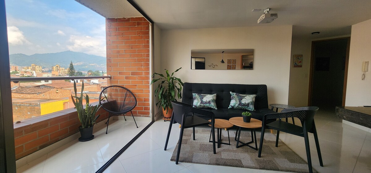 Uteč do tohoto klidného bytu v Medellíně s nádherným výhledem z balkonu, který je ideální pro práci na dálku nebo malé rodinné dovolené. Nachází se v klidné čtvrti poblíž nákupního centra Los Molinos a nabízí vysokorychlostní internet (500 MB), dvě útulné ložnice, plně vybavenou kuchyň a relaxační televizní místnost. Objevuj pulzující místní kulturu Medellinu, malebné parky a okouzlující kavárny jen pár minut od tebe. Toto klidné útočiště kombinuje pohodlí, komfort a šarm pro nezapomenutelný a klidný pobyt. 🍃 ⛰️ 🏠