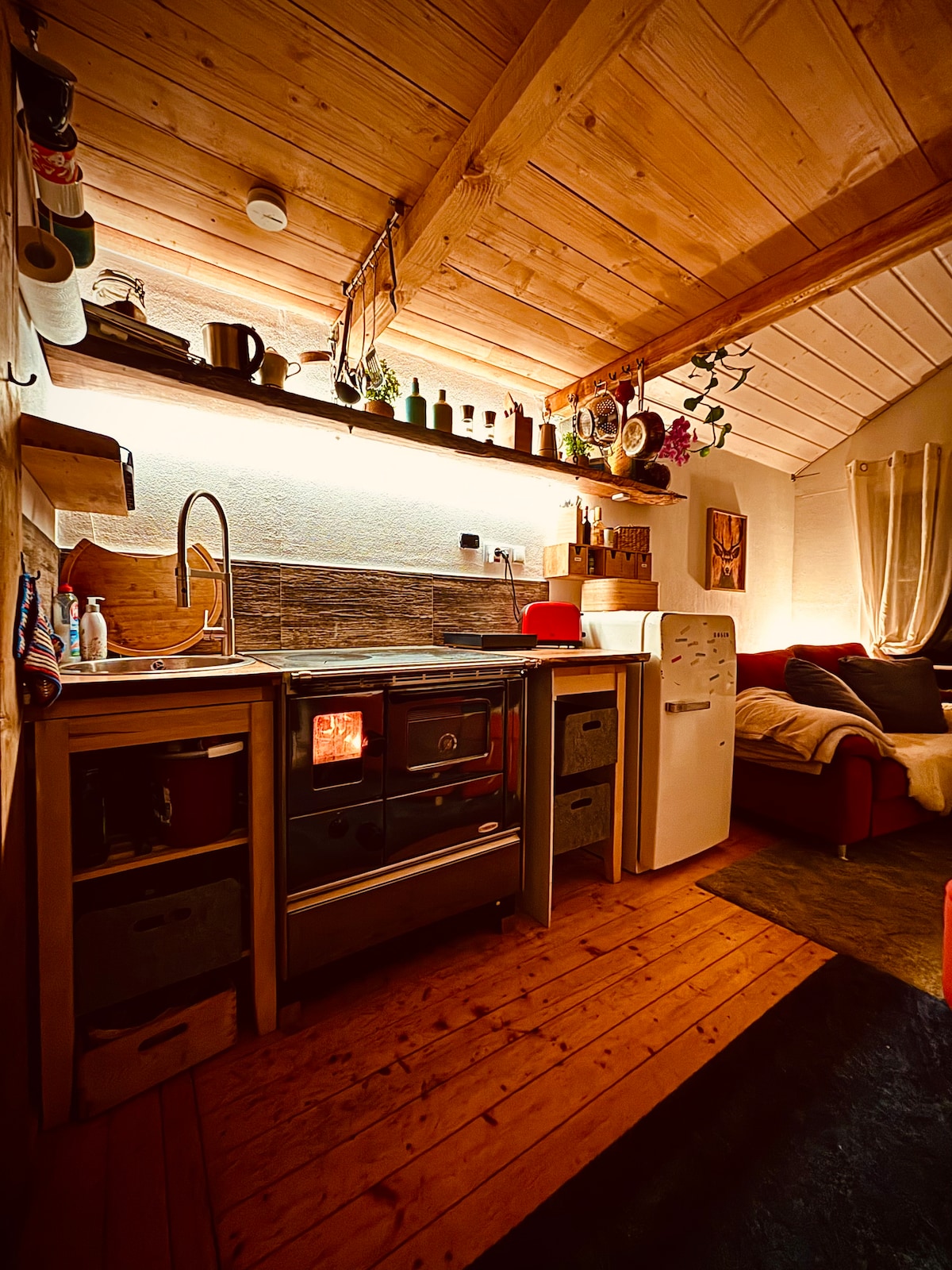 Nachází se na okraji „přírodního parku Schönbuch“. Ideální výchozí bod pro pěší a cyklistické túry. Atraktivní destinace, jako jsou Tübingen, Bebenhausen, Herrenberg, Stuttgart... jsou snadno dostupné. Vaření, jídlo, obývací pokoj + terasa v přízemí. Podkrovní postele jsou přístupné po žebříku a filigránovém „síťovém mostě“ a vyžadují jistotu. Borové dřevo na stěnách dodává domu rustikální útulnost a příjemnou vůni. Peletová kamna a radiátory poskytují v zimě příjemné teplo.