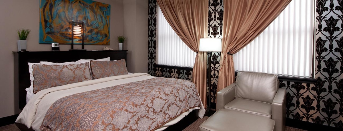 Luxusní pokoj s manželskou postelí v srdci Niagarských vodopádů