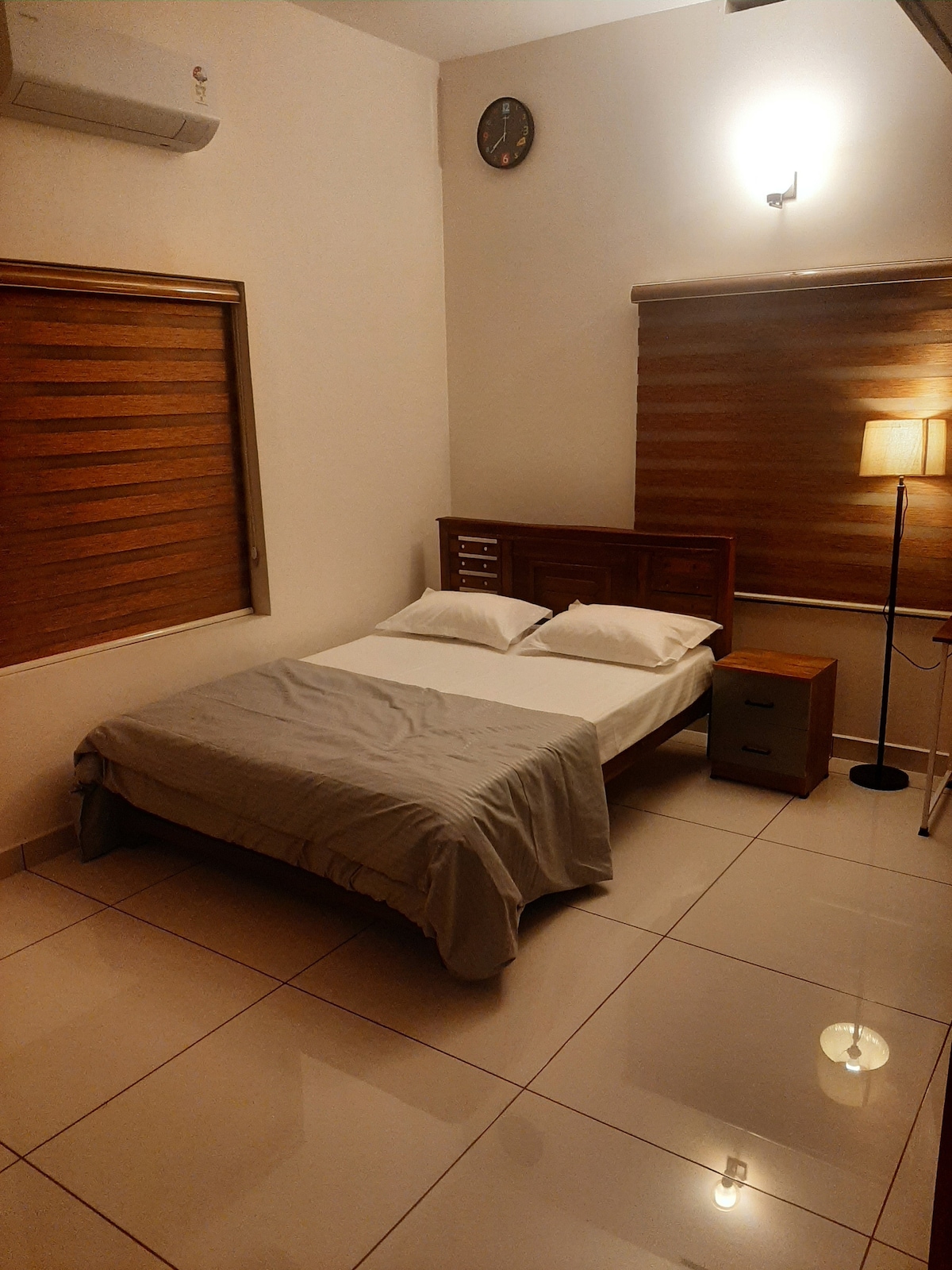 🛏️🌿 Tento domov v prvním patře v klidném komplexu nabízí 2 klimatizované ložnice s klimatizací, která je k dispozici mimo špičku, aby se podpořila udržitelnost. Ostatní prostory zůstávají příjemné díky stropním ventilátorům a přirozené ventilaci. Mezi prvky patří útulné dvoulůžko, zatemňovací závěsy a jemné osvětlení pro klidné noci. Ideální pro krátké návštěvy i delší pobyty, poskytuje pohodlí a klid v srdci Kochi. Náš domov je určen pro klidné pobyty, takže hosté, kteří hledají večírky, se prosím omluví.