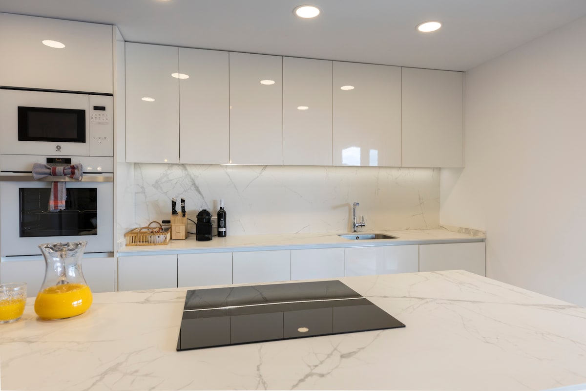 Náš duplexový penthouse je ideální pro strávení fantastické dovolené. Jedná se o prostorné ubytování, protože má dvě patra, na jednom najdete dvě dvoulůžkové pokoje, velkou koupelnu s velkou sprchou a otevřený prostor s plně vybavenou kuchyní, prostornou jídelnu a velký obývací pokoj. V tomto patře se také nachází balkon. Horní část je velmi exkluzivní a intimní a nachází se zde velká ložnice s koupelnou, další obývací pokoj, posilovna a východ na velkou terasu.
