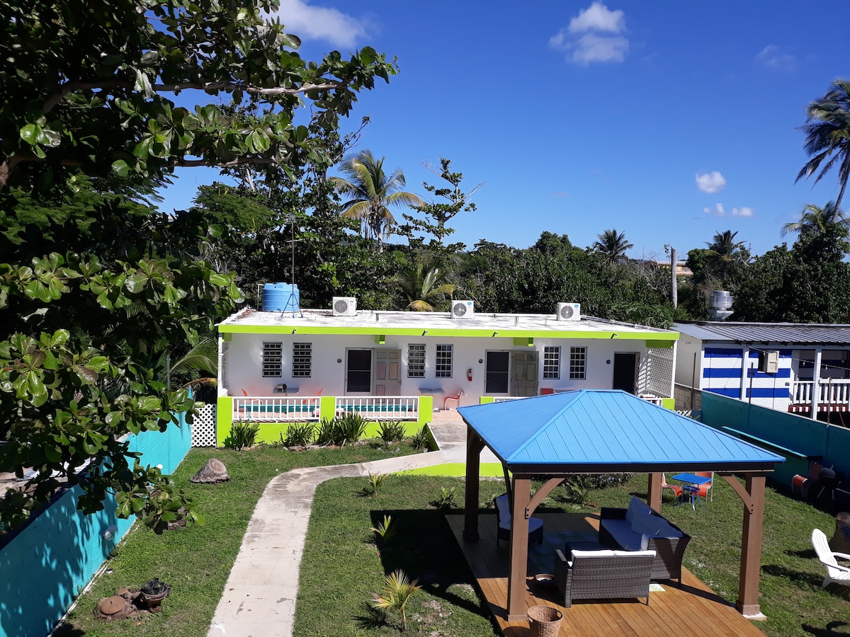 Jsme zábavná, plážová karibská nemovitost plná tropických barev, se skvělou polohou a spoustou dobrého jídla. Naše pokoje jsou o umístění na rozpočet , ideální místo k pobytu, pokud hledáte na procházku na pláž, do místních restaurací, hudby a ostrovní atmosféru , výchozí bod pro výlety do bioluminiscenční zátoky, v docházkové vzdálenosti do Sunbay Beach. Jednoduché, malé, roztomilé, čisté .Chceme, abyste si vážili a milovali naše místo a ostrov stejně jako my, kteří se chtějí vrátit a navštívit nás znovu