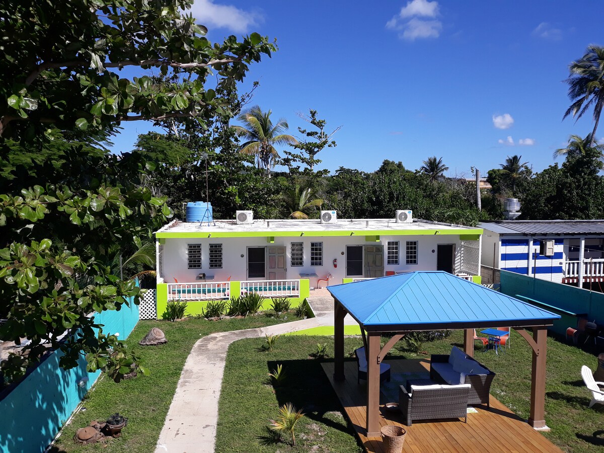 Jsme zábavná, plážová karibská nemovitost plná tropických barev, se skvělou polohou a spoustou dobrého jídla. Naše studia jsou o umístění na rozpočet, ideální místo k pobytu, pokud hledáte místo, kde si můžete připravit lehká jídla s malou kuchyňkou, pokud chcete chodit na pláž, do místních restaurací, užívat si hudbu a ostrovní atmosféru, výchozí bod pro výlety do bioluminiscenční zátoky, chůze na pláž Sunbay, pokud chcete být v centru toho všeho, to je ono!