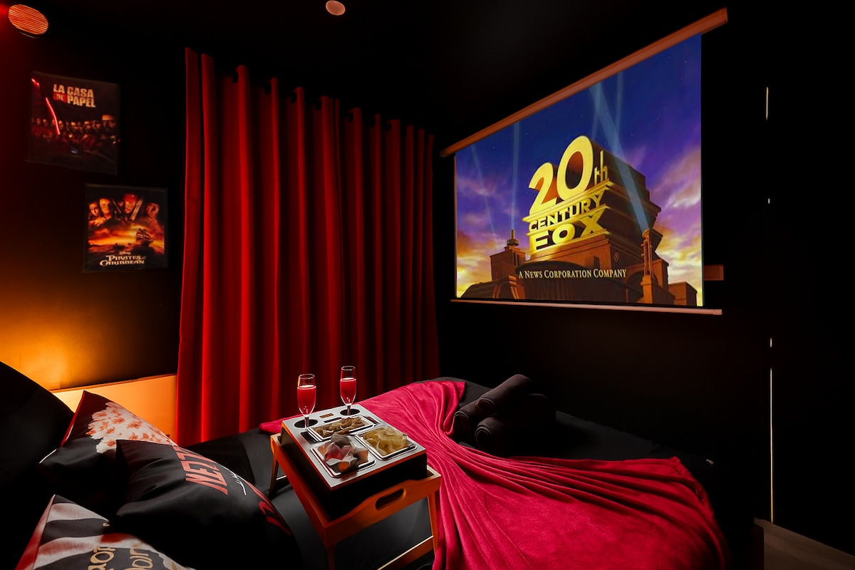 Hledáte smyslný a luxusní kokon? Přijeďte si užít kouzelnou noc v naší Love Room a vytvořte si nezapomenutelné vzpomínky. Co může být lepší než balneo s funkcí vířivky a barevnou terapií, která rozvíjí všechny vaše smysly? Doplňky, jako je kříž svatého Ondřeje, houpačka nebo pohovka Tantra, vám umožní objevit nebo znovu objevit svého partnera... protože vše je navrženo tak, abyste si užili skvělý pobyt ve znamení tělesných rozkoší...