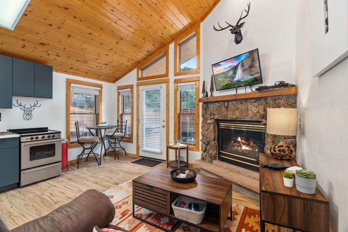 Ponořte se do blaženosti ve vířivce Rockside Hideaway, odpočiňte si v manželské posteli pod střešním oknem, udělejte si pohodlí před krbem nebo se projděte 15 minut do restaurací a obchodů (povolení 3210). Tato historická chata má všechno! 15 minut pěšky do centra Estes a 5 minut jízdy do Národního parku Rocky Mountain. + Soukromá vířivka a terasa + Elektrický krb bez starostí + Plně vybavená kuchyně + 700 s/f + Atmosféra srubu + Prádelna + Světlíky + Hydromasážní vana/sprcha + Manželská postel a rozkládací pohovky Útulné ubytování až pro 4 osoby!