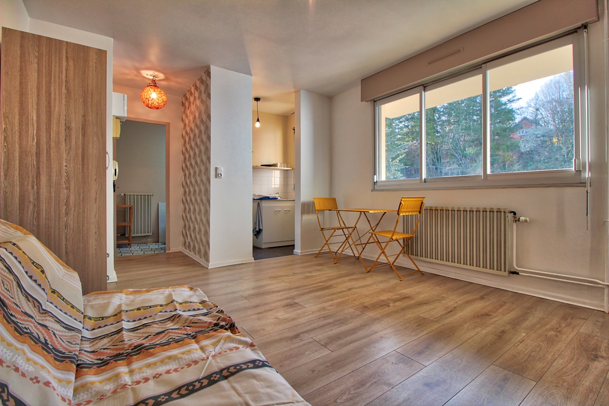 Objevte náš půvabný apartmán v Montbéliardu, který se nachází v zelené a diskrétní rezidenční čtvrti, bez přímého souseda, s vlastním vchodem. Tento útulný a příjemný prostor, který se nachází pouhých 200 metrů od historického centra, je ideální pro relaxaci po dni stráveném objevování. Ideálně umístěný 2 minuty od vlakového nádraží a obchodů, můžete si užít zámek Montbéliard a jeho vánoční trh v okolí. V blízkosti Stellantis, muzea Peugeot a stadionu Stade Bonal.
