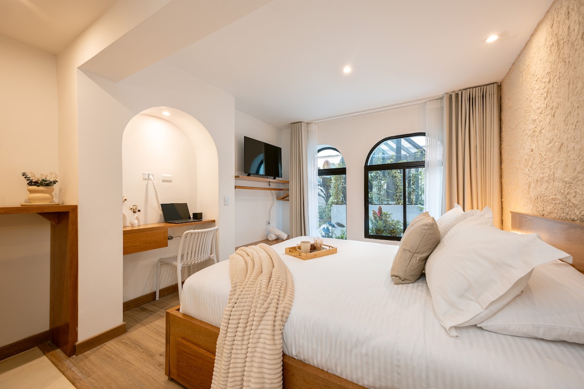 Located on Laureles, among private homes and quaint shops, Alori’s 5-story facade beckons you with its warm brick and wood exterior accented with greenery and private balconies. Reservation includes 1. Light continental Breakfast 8-9 am. 2. Concierge service 24/7 3. Virtual Bilingual Turistic Guide 24/7 4. Airport transportation to Laureles (Building) 5. Spa ( jacuzzi and sun bath) 6. Fitness Gym 7. Limited Insurance 8. Private Parking 9. 1 Museum Pass or Dance Class