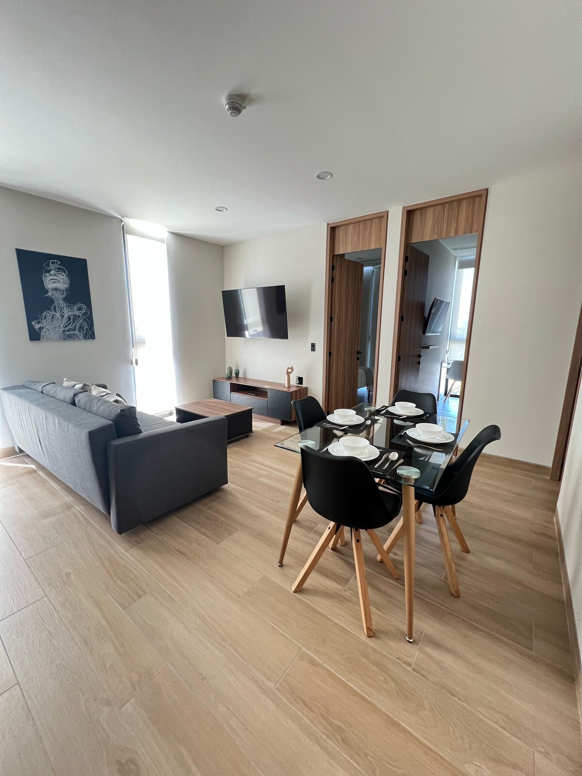 Krásný a útulný byt se nachází jen pár kroků od Expo Guadalajara . S krytým parkovacím místem, výtahy, vrátným a velkolepým výhledem. -gymnasium - coworkingový prostor - zasedací místnosti - střecha s grily - společenská místnost Zasedací místnost a místnost pro akce jsou za příplatek a je nutná předběžná rezervace.