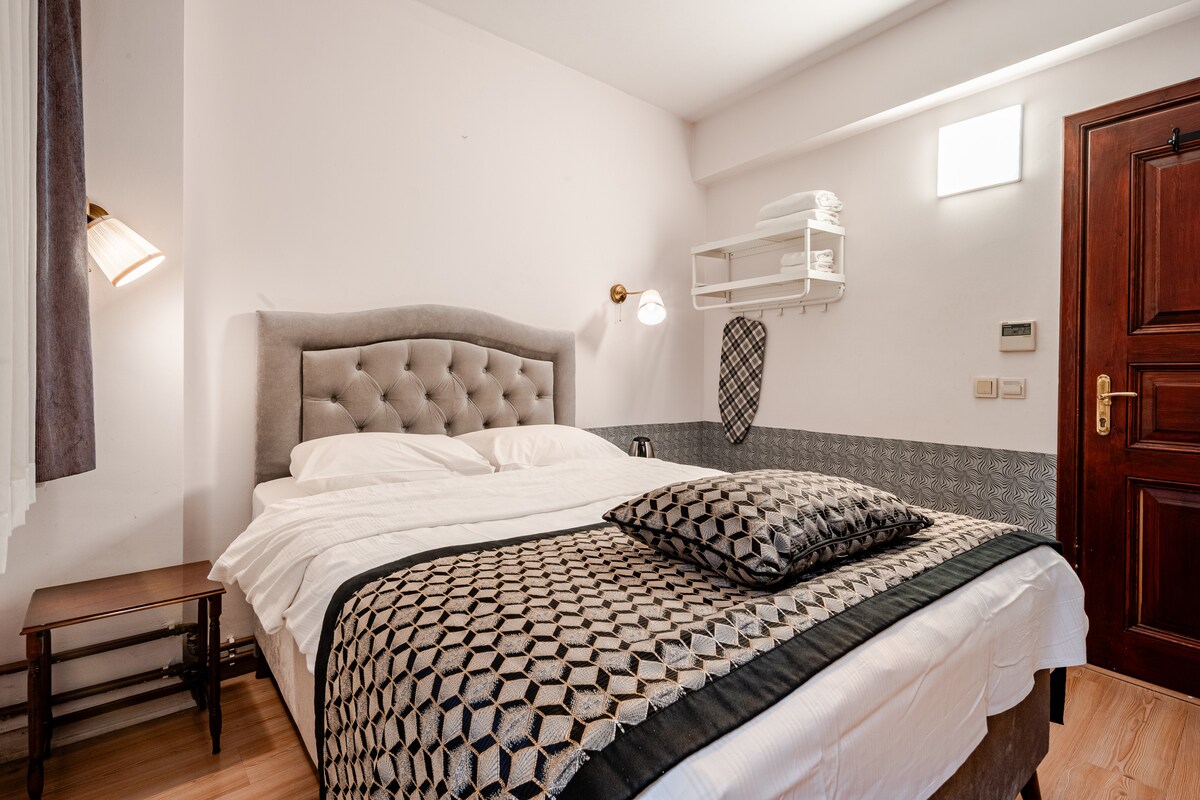 Jedinečný prostor poblíž Zlatého rohu! ☞ Skóre pro chůzi 60 (procházka do kaváren, restaurací, obchodů atd.) ☞ 1000 Mbps wifi + pracovní prostor ☞ Klimatizace + sálavé vytápění ☞ Konvice ☞ 32” HD TV ☞ Venkovní jídelna ☞ Parkování na ulici zdarma ☞ Pianino 7 minut → Taksim 5 minut → Eminonu 30 minut Letiště → Istanbul ✈