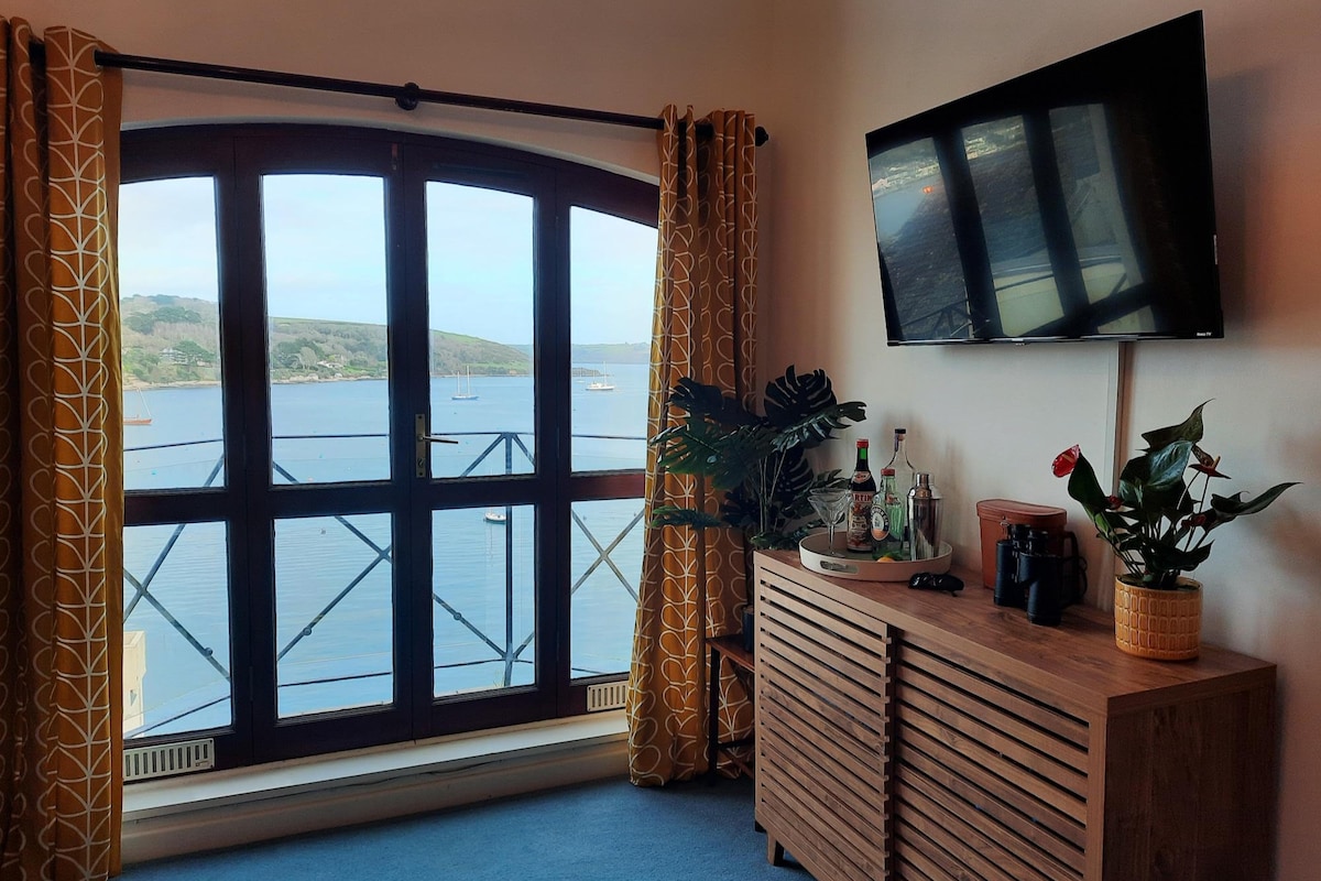 Toto je byt s tím nejlepším ze všeho – nejlepší výhled, nejlepší poloha, zbrusu nová zařízení a nejteplejší přivítání ve Falmouthu. Nachází se v klidné, uzavřené ulici, méně než 5 minut chůze od hlavní ulice Falmouthu, se skvělými kavárnami, hospůdkami, restauracemi a obchody. Pláže a hrad jsou vzdáleny pouhých 15 minut chůze a všechny leží na slavné pobřežní stezce Cornish. Během Tall Ships, Red Arrows, Falmouth Carnival a během ohňostrojů zajišťuje panoramatický výhled z terasy ty nejlepší výhledy.