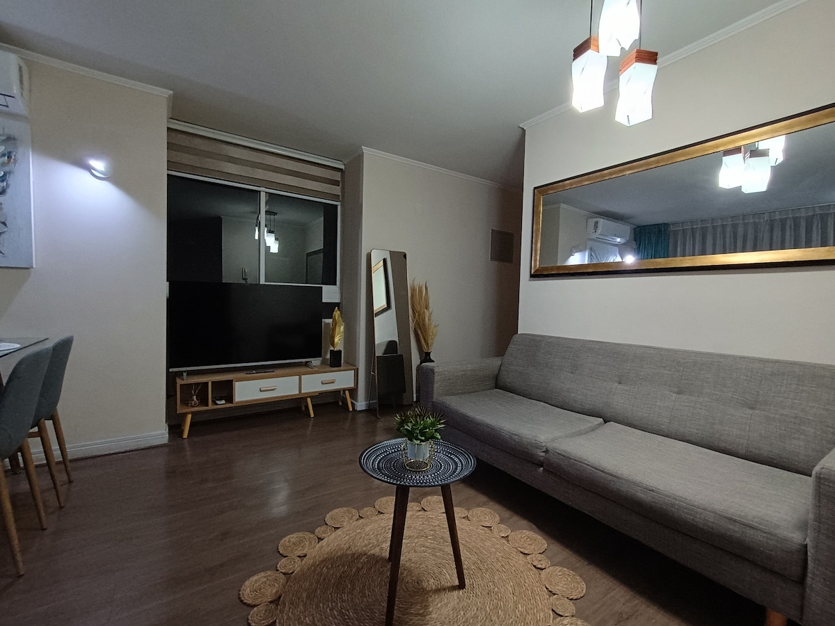 Welcome to our elegant apartment, located in Santiago Centro. Jen pár kroků od úžasných atrakcí, jako jsou Club Hípico, Movistar Arena, Fantasilandia a rušné čtvrti Meigg's a University, si užiješ tu nejlepší polohu. Moderní prostor určený pro 2 až 4 osoby, vybavený vším potřebným pro pohodlný pobyt. Kromě toho je v budově bazén, posilovna, prádelna a společné místnosti. Tvé dobrodružství v Santiagu začíná zde. Rezervuj nyní!