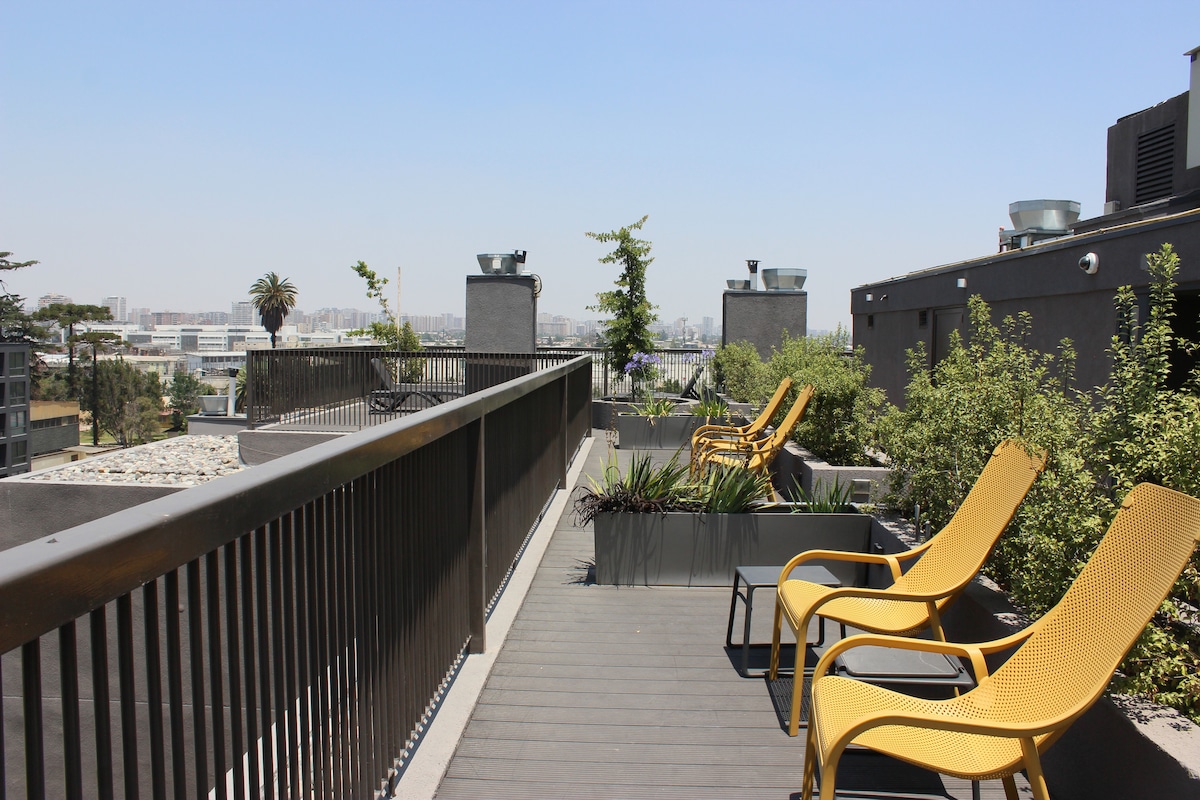 Discover a stylish studio apartment in the heart of Santiago with stunning skyline views from a spacious private terrace. Perfect for solo travelers, couples or digital nomads, it features a king bed, grilling and dining outdoor area, and cinema-like TV projection. Just a 5-min walk to Cerro Santa Lucia, the historic center, and the metro. An urban oasis designed for relaxation and exploration.
