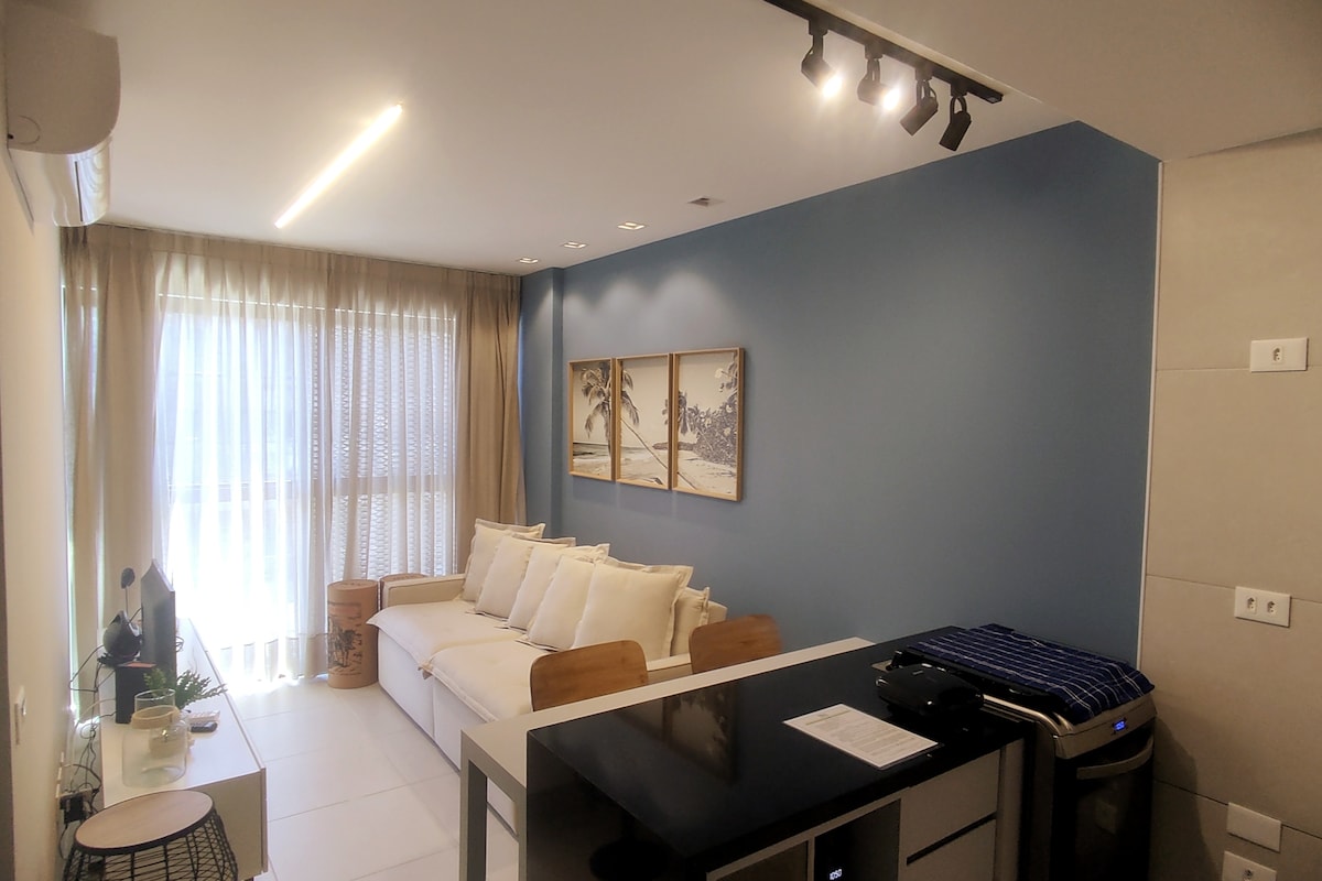 Flat decor and furnished with maid service, in the best circuit of the carnival of Salvador. At the apt studio we have 1 king size bed, 1 sofa bed, 1 smart TV, split air conditioning, wi-fi, equipped kitchen, refrigerator, bed and bath linens, pillows and soaps. Apt is a few meters from Barra Lighthouse, and beachfront 🏖️ OBS: OVEN DISABLED! Recepce funguje nonstop.