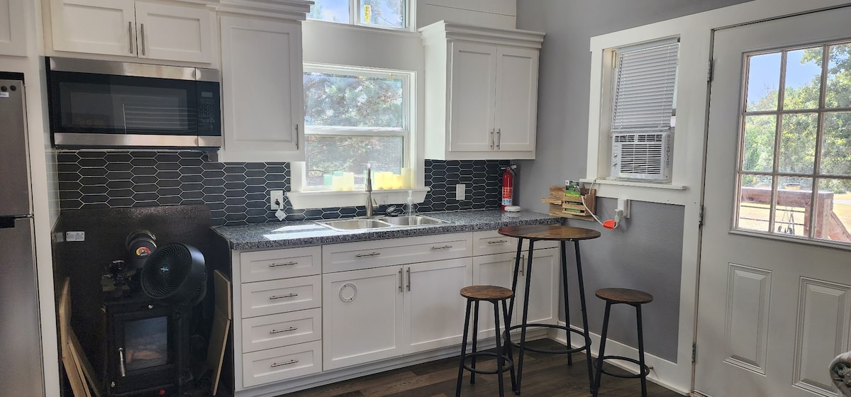 Útulná chalupa s jednou ložnicí na klidném 65akrovém koňském ranči v důchodu. Ideální pro klidný únik. Uvnitř najdeš pohodlnou manželskou postel Queen, posezení, obývací pokoj s rozkládací pohovkou pro další místo na spaní a plně vybavenou kuchyň s plynovým sporákem se dvěma plotýnkami. Pro rodiny s dětmi je na požádání k dispozici pack'n play. Venku si můžeš vychutnat oplocený dvorek s hernou, grilem a piknikovým stolem. Úchvatné západy slunce a hvězdné noci. Tvůj klidný pobyt čeká!