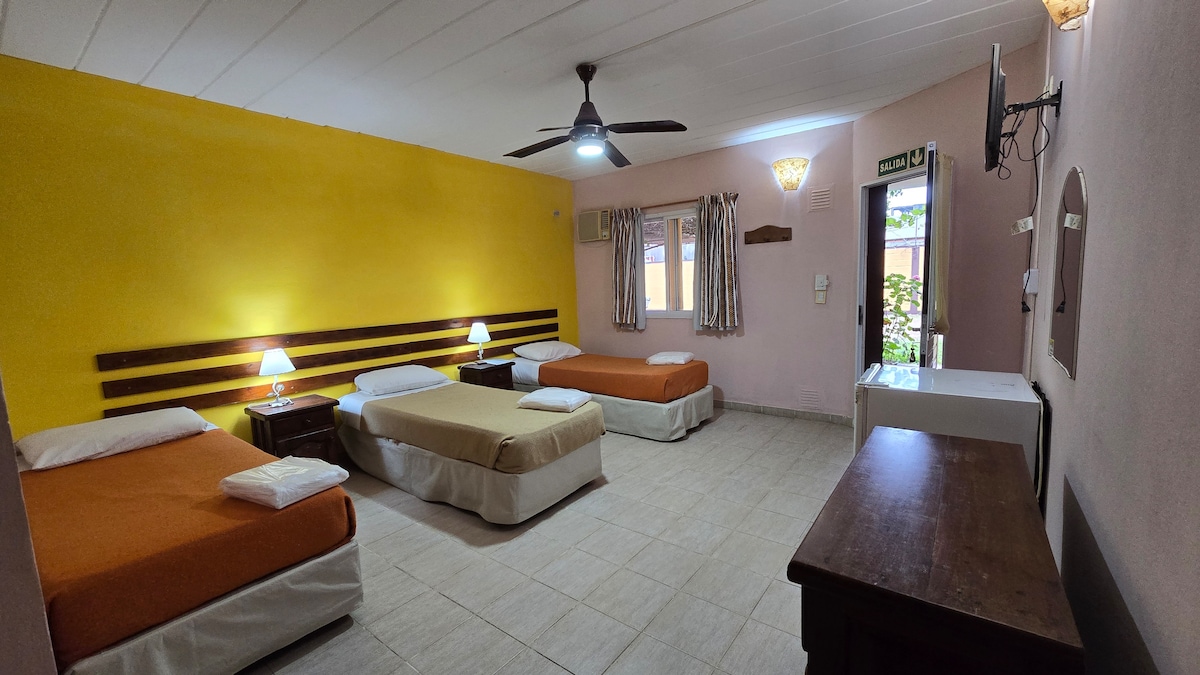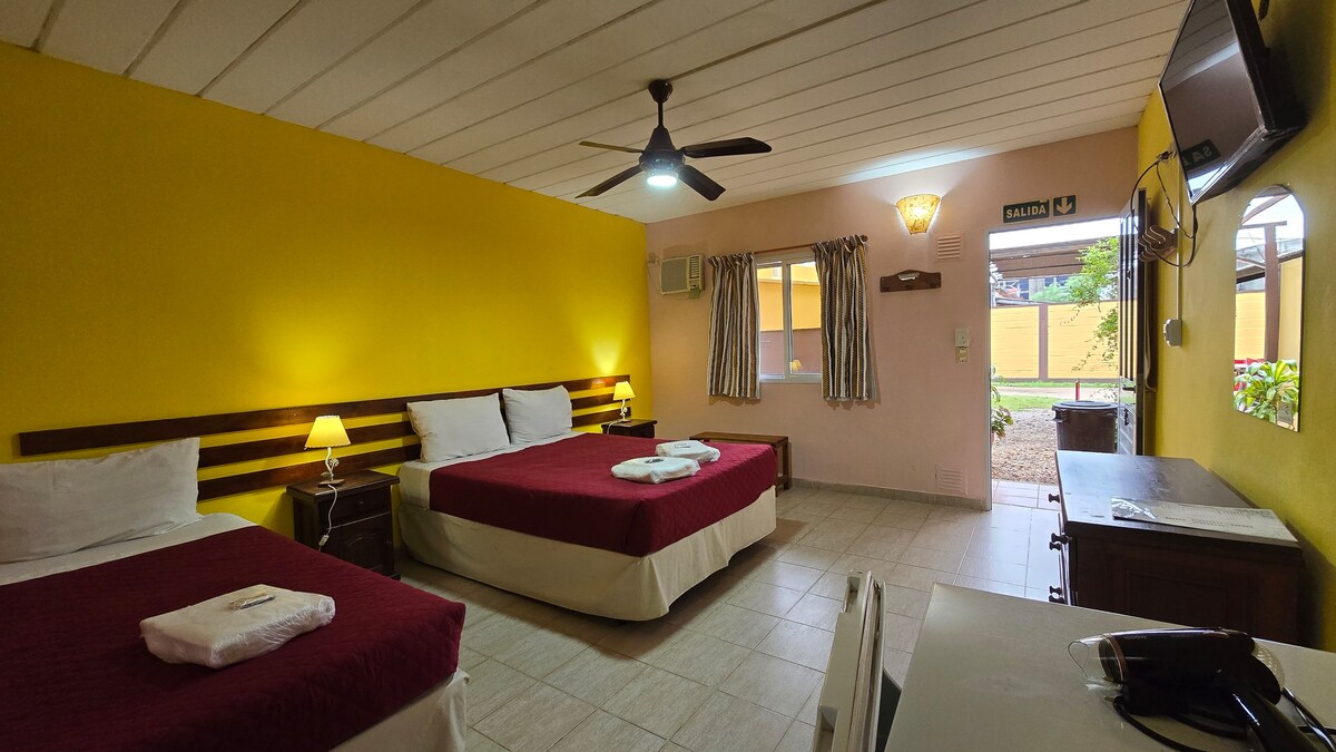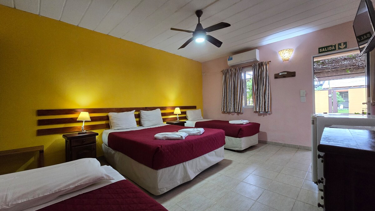 Jsme Termas del Este, rodinný hotel s 35 plně vybavenými pokoji (klimatizace, TV, minibar, postel sommier, topení), krytým vyhřívaným bazénem, vlastním parkovištěm, lázní a restaurací (zde zdůrazňujeme menu se třemi pokrmy domácího jídla vyrobeného v domě). Metrů od termálních lázní a vodního parku. Tato nabídka zahrnuje snídani, ale při příjezdu se můžeš rozhodnout pro polopenzi. *fotky jsou orientační, uspořádání nábytku se může lišit