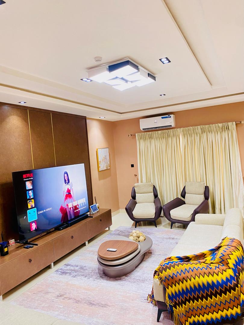 Ložnice Basketbalový skok Soukromý balkón Wifi přes optické vlákno Pračka Zařízený obývací pokoj Plně vybavená kuchyně 2 toalety a 1 koupelna PlayStation 5 (FiFA, Hit Man, MK) Restaurace a obchody v blízkosti Čisté a svěží povlečení a ručníky 2 klimatizace na solární energii a střídač Vynikající zákaznický servis a podpora Dveře s přístupovým kódem a kamerou u vchodu 65 a 55 Smart TV (Prime, Netflix a DSTV) Klidné, bezpečné a krásné sousedství Elektřina nonstop (solární, střídač a generátor)