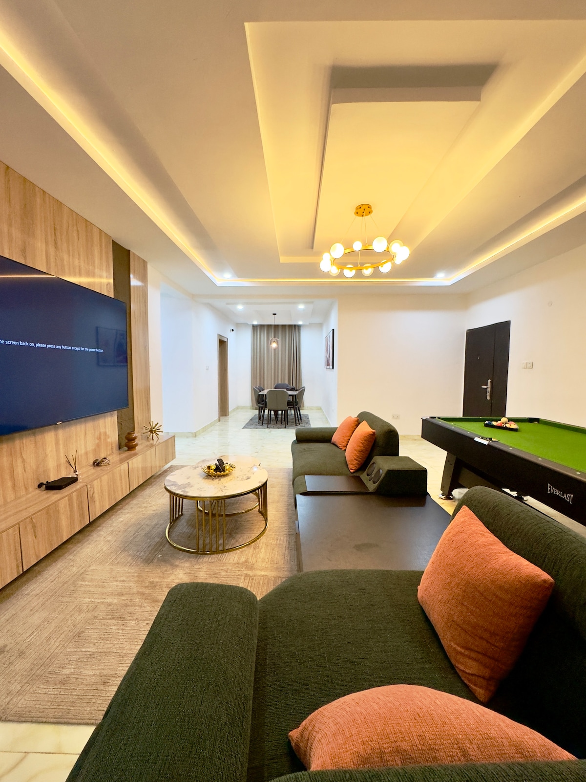 Představ si, že vstoupíš do luxusní oázy v srdci Abuji. Naše ohromující útočiště se 3 ložnicemi ve Wuye je ideálním útočištěm pro rodiny, přátele a cestovatele, kteří hledají pohodlí, zábavu a klid. Jakmile vstoupíš dovnitř, přivítá tě prostorný, klidný obývací prostor, ideální pro relaxaci a kvalitní čas strávený s blízkými. Ale nenech se zmást - naše útočiště je také rájem zábavy! Přemýšleli jsme o všem, aby byl tvůj pobyt nezapomenutelný. Rezervuj si pobyt u nás!
