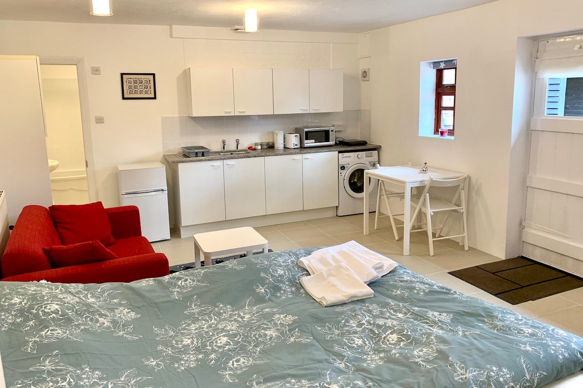 Nově zrekonstruované, samostatné studio na soukromé silnici – klidné prostředí 20 minut chůze do vesnice Lindfield (0,9 míle) a stanice Haywards Heath (0,9 míle). Studio je přístavkem k hlavnímu domu - zcela samostatné, má vlastní samostatný vchod, 1 přidělené parkovací místo. obývací pokoj / ložnice, plně vybavená kuchyňská linka, trouba, gril, mikrovlnná trouba, snídaňový bar, sprchový kout. Manželská postel, rozkládací pohovka pro dvě osoby. Vhodné pro maximálně 2 osoby Využití zahrady není zahrnuto. Vynikající wifi – 25 Mbps.