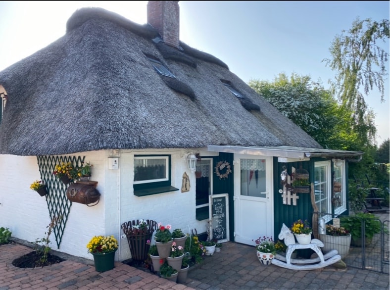 Náš dům s doškovou střechou „Haus Lieschen“ se nachází uprostřed Goosefeldu mezi břízami a zelenou kvetoucí loukou. Dům byl v letech 2020/2021 komplexně a s láskou zrekonstruován. K dispozici jsou dvě ložnice, velký obývací pokoj a jídelna. Vše jsme zařídili s láskou k detailu. Kamna, pohovky a pečlivě zachované kouzlo staré chalupy s doškovou střechou zajišťují útulnost. Náš dům je obklopen velkou zahradou s velkým pískovištěm. Baltské moře je vzdáleno 5 km.