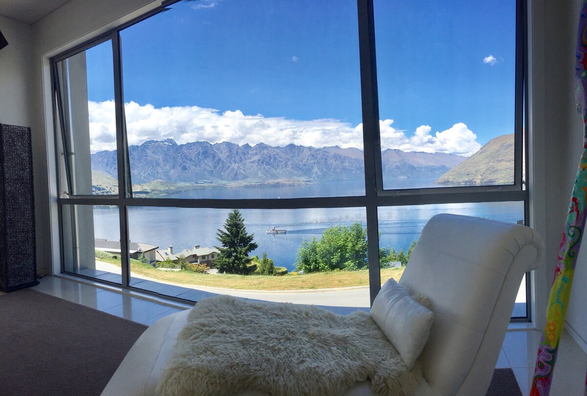 Ubytuj se v tomto uvolněném, samostatném studiu s nádherným výhledem na jezero Wakatipu a okolní hory. Je krásně vybavené a je ideální základnou pro váš pobyt v Queenstownu. Užij si malebnou 10–12minutovou procházku podél břehu jezera, přes botanické zahrady, až do centra Queenstownu. Budeš mít všechno na dosah, ale v klidném a soukromém prostředí. Toto stylové studio je ideální pro 1–2 hosty a nabízí kvalitní vybavení a příjemné pohodlí, které zajistí příjemný a nezapomenutelný pobyt.
