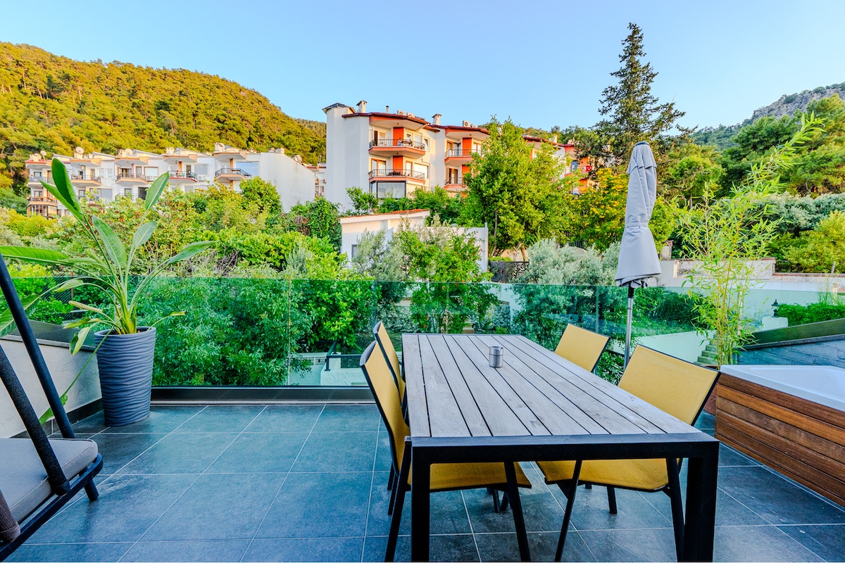 Probuď se v tomto krásně navrženém apartmá přímo na přístavišti Fethiye Marina a vychutnej si výhled na luxusní jachty a křišťálově čisté vody Středozemního moře. Tento nádherný apartmá na nábřeží nabízí bezkonkurenční kombinaci elegance a pohodlí. Apartmá Marine Suite s otevřeným obývacím prostorem s designovým nábytkem, relaxační závěsnou židlí a soukromým balkonem s výhledem na přístav je vaším klidným útočištěm v srdci Fethiye.
