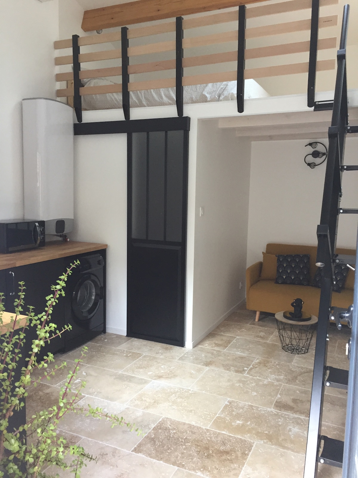 Ubytování / studio (1 pokoj), plně vybavené, 17 m² v přízemí domu, 10 minut jízdy z centra Lyonu. Světlý, s veškerým komfortem, zrekonstruovaný architektem, který je zároveň majitelem. Komfortní lůžkoviny, 1 manželská postel 160 cm. Kuchyňský kout / bar / koupelna. Přímý přístup na terasu + do zahrady (100 m² pro nájemce). Myčka nádobí, trouba / mikrovlnná trouba, velká chladnička, elektrické varné desky UPOZORNĚNÍ: WC je oddělené, na podestě. Pro výhradní užívání nájemců. Wi-Fi zdarma
