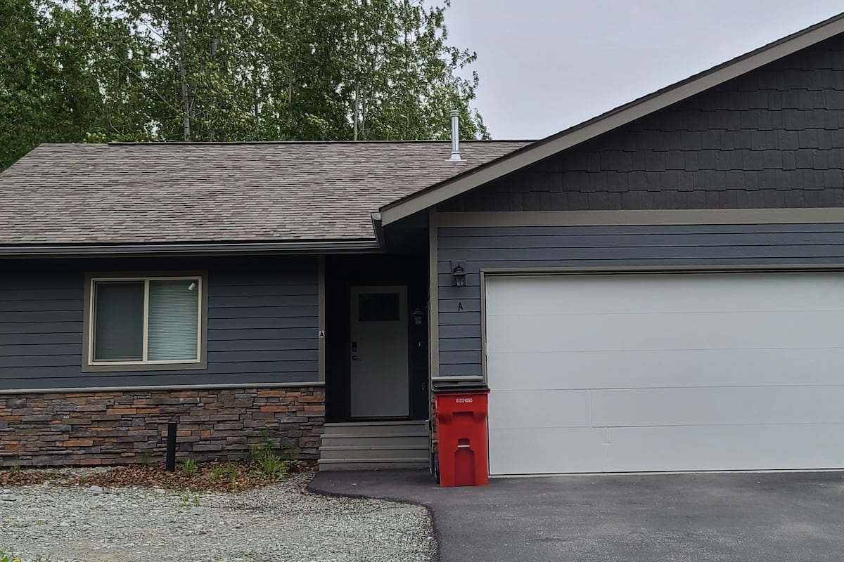Přijeďte a ubytujte se v našem ubytování se 3 ložnicemi, 2 koupelnami a garáží pro 2 auta. Plnohodnotná kuchyně s křemennými pracovními deskami, nerezovými spotřebiči, ostrůvkem a osvětlená zadní veranda s grilem pro všechny vaše potřeby vaření. Velká pračka a sušička. Obývací pokoj a hlavní ložnice mají chytré televize. Poskytujeme neomezenou wifi! Tento duplex je několik minut od čerpací stanice, kavárny, našeho historického města Palmer a 10 minut od Hatcher Pass, skvělého místa pro snowboarding a lyžování v zimě a turistiku a sběr bobulí v létě.