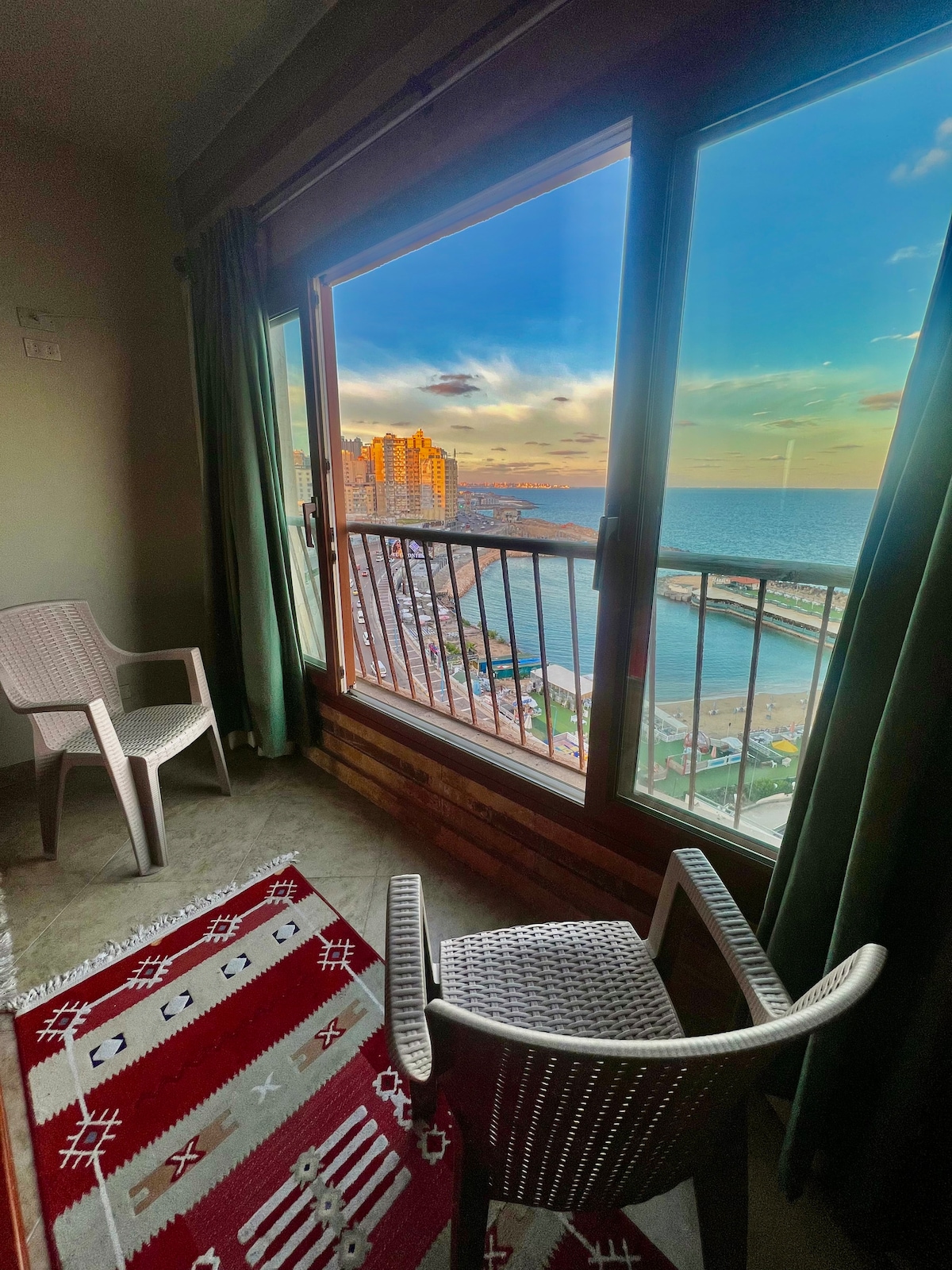 شقه مفروشه على البحر مباشره مكيفه بالكامل غرفتين