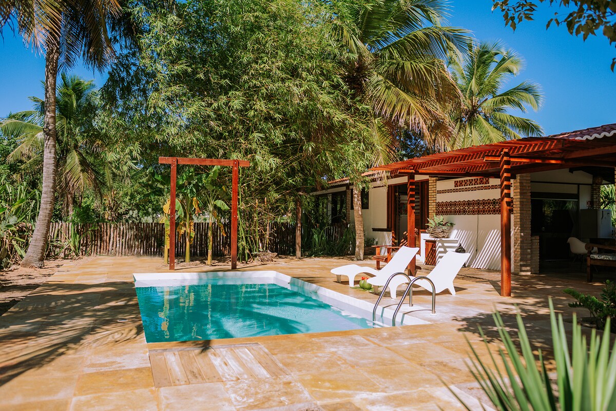 Vila Alba je krásný dům na pláži na straně Praia das Agulhas, v Pontal do Maceio; Pontal do Maceió je malá rybářská vesnice 130 km od Fortaleza. Nemovitost je malý vesmír sám o sobě, obklopený rozlohou 7,5 hektarů, plných kešu stromů, kokosových stromů a velkých palem. Interiérová výzdoba je jednoduchá, teplá a útulná. Doufáme, že se ubytujete ve Vila Alba a objevíte Pontal do Maceio. Beijos