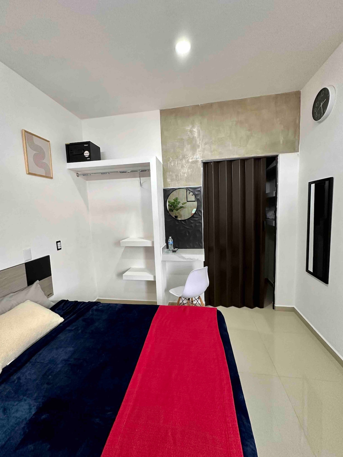 Je to klidné, moderní, centrální, nové a útulné místo, kde můžete strávit vynikající krátký nebo dlouhý pobyt v krásném městě Zamora Prostor Samostatný apartmán s elektronickým zámkem pro větší pohodlí, který má všechny služby, jako je KLIMATIZACE, teplá voda, Netflix, vysokorychlostní internet Pozoruhodné Pouze 13 minut od centra Nákupní centrum Sentura 10 minut Bodega Aurrera s bankomatem BBVA 4 minuty Oxxo 4 minuty