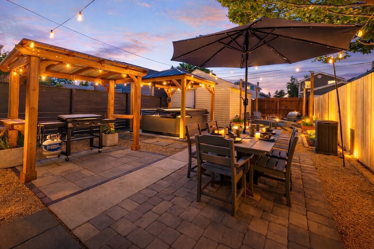 ➤ Vítej ve své mimořádně prostorné oáze se 3 ložnicemi, hned vedle Summit Street poblíž OSU a Short North! ★ Ponoř se do vířivky pod řetězovými světly nebo se natáhni na pohovku a užij si filmový večer ★ Vychutnej si krásnou oplocenou zahradu, ohniště, gril ★ Pěší vzdálenost do restaurací, barů, parků a pár minut do nejlepších míst v Columbusu ★ Parkování na ulici + v garáži – vzácné v centru Columbusu ★ Prostorné, stylové interiéry: pohodlné postele, svěží ložní prádlo, moderní dekorace ➤ Ideální pro herní dny, návštěvy OSU, akce, rodinná setkání