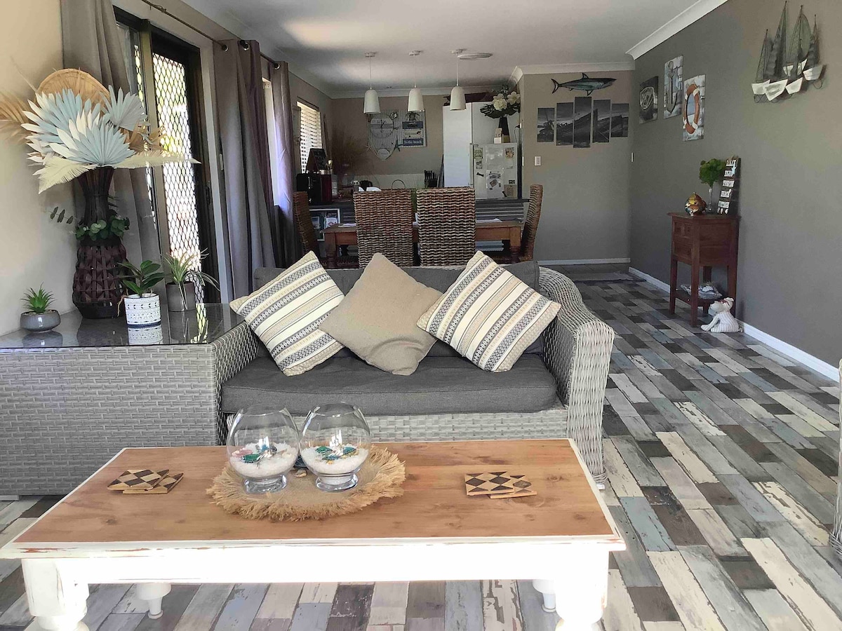 12 domů od krásného křišťálově čistého uklidňujícího oceánu, to je stará rybářská vesnice, žádný spěch, užijte si náš nádherný domov, stejně jako my, spolu s naším klidným sousedstvím, náš domov má všechny moderní prvky včetně bytu pro babičku, děti mohou honit kraby, hrát si v písku, rybařit, jezdit na kajaku, dívat se na noční oblohu bez městských světel, potkat místní klokany, možná si dát šálek kávy v místních restauracích Goodies nebo Salty's.