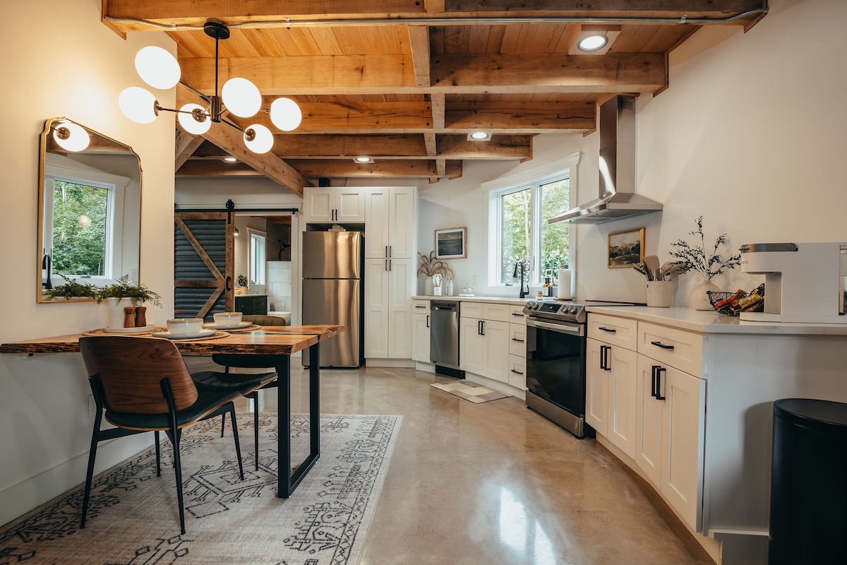7 minut jízdy do parku Mount Baldhead 9 minut jízdy na pláž Oval 12 minut pěšky na Butler Street Tato krásná srubová chata je zasazená do klidné zalesněné oblasti, takže byste nikdy neuhodli, že se nachází v srdci Saugatucku. Tato útulná chata, která je krásně zařízená a obklopená zelení, je ideálním únikem pro páry. Projděte se centrem města, obdivujte lodě z přístaviště a prozkoumejte další nedaleké atrakce, včetně pláže Oval Beach a různých turistických stezek! Zažijte Saugatuck s námi a zjistěte více níže!