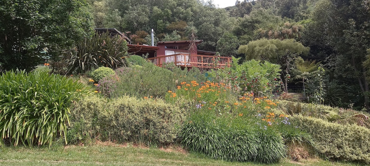 The Herb Farm Cottage is a world of it's own in rural Grehan Valley. Here in the country garden stream side setting of the former Herb Farm (New Zealand's first opened in 1976) you will find the original cottage with the ground floor studio/bed sitting room and adjoining parlour. Relax and enjoy the special setting of flowers, wishing well, native bird life, frogs, friendly free range chooks, ducks on the pond and a great night sky. All just a 15 minute stroll to the village and seaside.