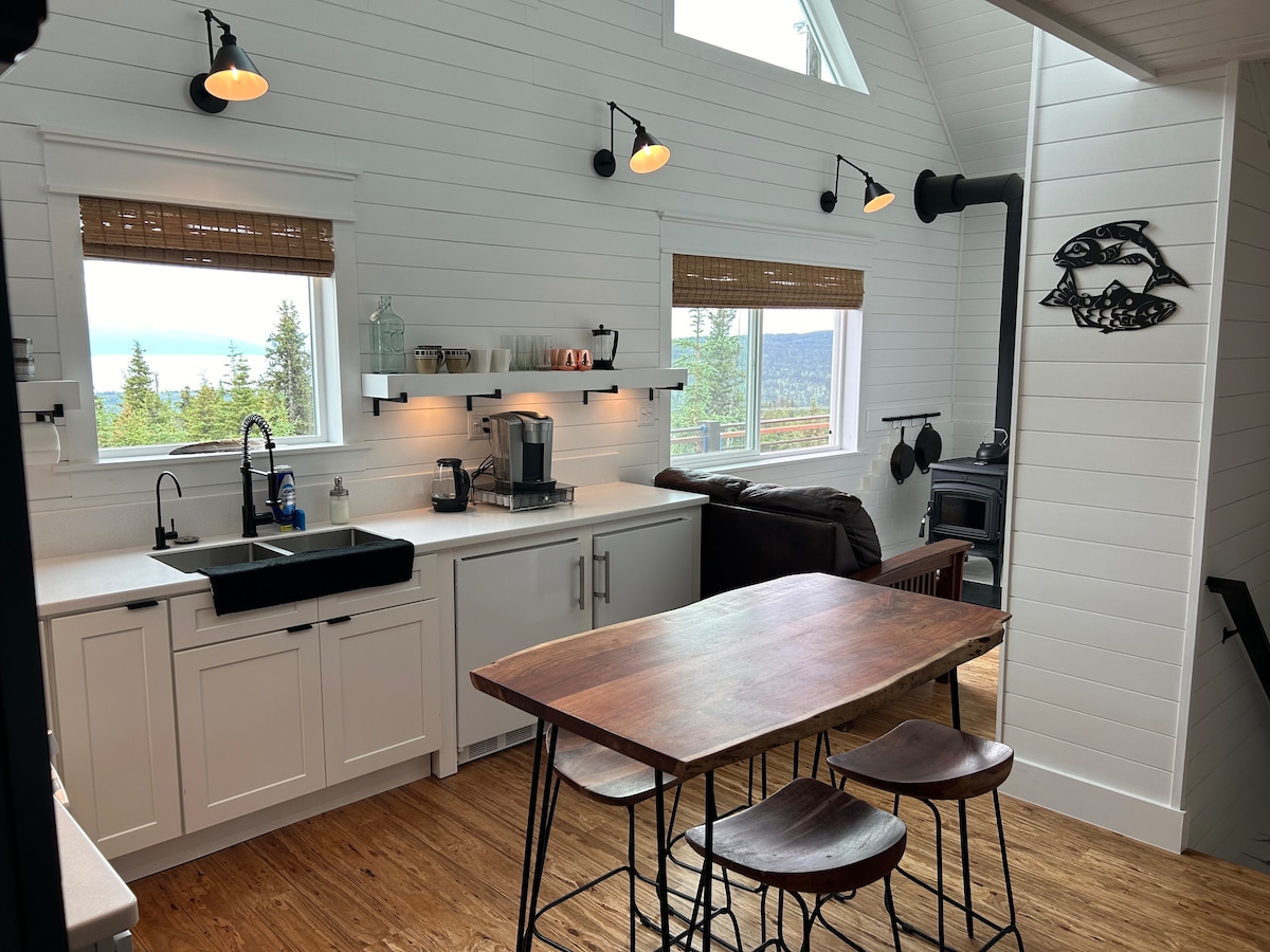 JUST READ THE REVIEWS from our guests! "The Loft" is a gorgeous and very special and unique property. Ranked by AirBNB in the top 1% of homes. Situated on 3 acres located on the downtown Homer hillside, with spectacular views overlooking the Homer Spit, Kachemak Bay, Beluga Lake and more. Surrounded by lush, magical gardens. Enjoy this harmoniously calm, beautiful, and private setting, with spectacular views and gorgeous gardens. Quality, custom interior finishes rival a 5 star hotel.
