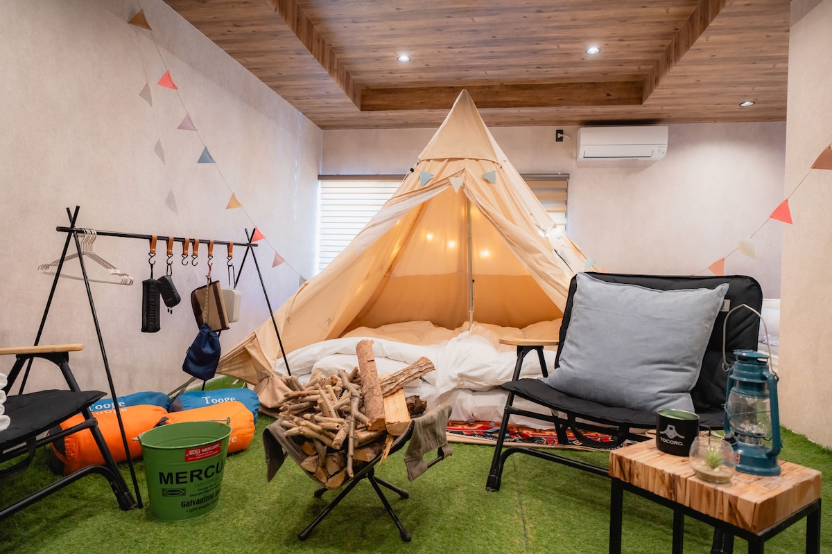 1 minuta pěšky od stanice Kawaguchiko! Užijte si pohodlný a neobvyklý zážitek v elegantním glampingovém kempu! Stan ve tvaru zvonu, stan ve tvaru písmene U, houpací síť
