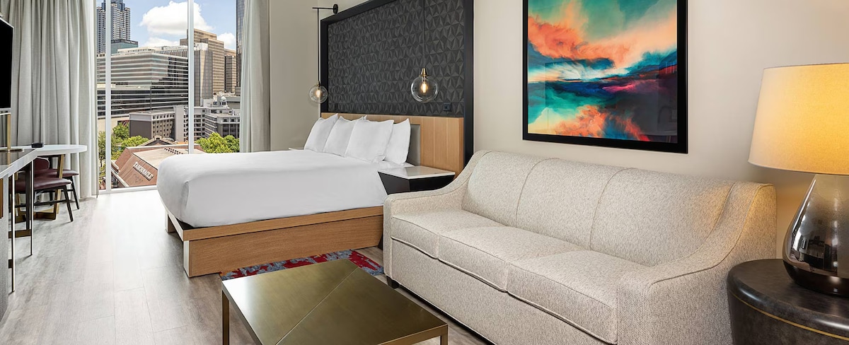 10 minut od stadionu Mercedes Benz, který bude hostit MISTROVSTVÍ SVĚTA VE FOTBALU 2026 Užij si stylový zážitek v tomto centrálně umístěném s výhledem na 19. patro. - Střešní bazén/terasa - Jumbotron Screen pro sport nebo filmy - Pračka/sušička v ceně - Myčka nádobí - Vyhrazený pracovní prostor - Nonstop fitness centrum na místě vybavené místností na jógu a saunou Od střešního bazénu a vířivky až po divadelní trávník a sky lounge, máme zážitek, který uspokojí každou tvoji náladu.