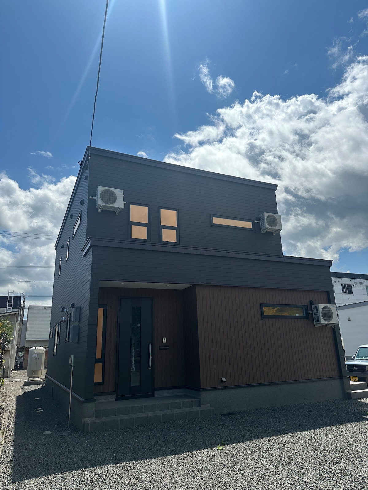 Free one-way taxi from Asahikawa Airport or Station for stays of 2 nights or more! Enjoy top-rated comfort in our brand-new designer house. Each guest gets a unique PIN code for security 🔐. Kids can safely play in the private courtyard or enjoy a BBQ 🍖 in warmer seasons. Great access — only 8 min from Asahikawa-Kita IC, 3 min walk from JR Nagayama Station, and 20 min to Asahiyama Zoo or ski resorts. Fully equipped workspace for remote work. Perfect for families or business stays!