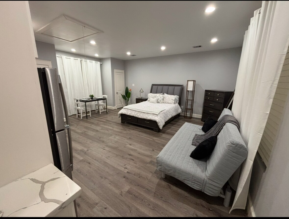 Vychutnej si stylový zážitek v tomto moderním apartmá pro hosty v centru dění! Dokončili jsme celou rekonstrukci tohoto Airbnb, které se nepodobá ničemu, co jste v Houstonu viděli. Zahrnuje luxusní ložnici a koupelnu se všemi potřebnými vybaveními. Vhodné pro rodiny a domácí mazlíčky s přístupem k extra velkému dvorku, kde si vaši domácí mazlíčci/děti mohou pobíhat a užívat si jen pro VÁS. Soukromé. Relaxační terasa/ohniště. Skvělé parkovací místo. Snadný přístup k I-10 a v blízkosti Houstonu.