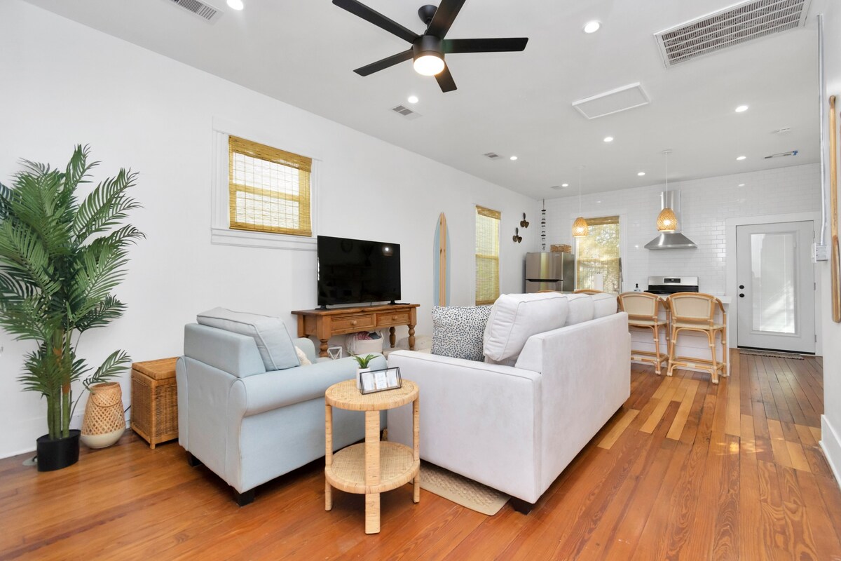 Recently renovated & newly furnished cottage is just 2 blocks from the beach and has all the charm and amenities for your next vacay or quick getaway. Close to the beach & only a stones throw from many restaurants, clubs and attractions. Love to cook? We have a HUGE mod kitchen with counter high barstools & a propane grill outside for BBQ. When entertaining at home there's an 82" Smart TV in the living room and Smart TVs in both bedrooms. ( no cable but lg asst of channels)