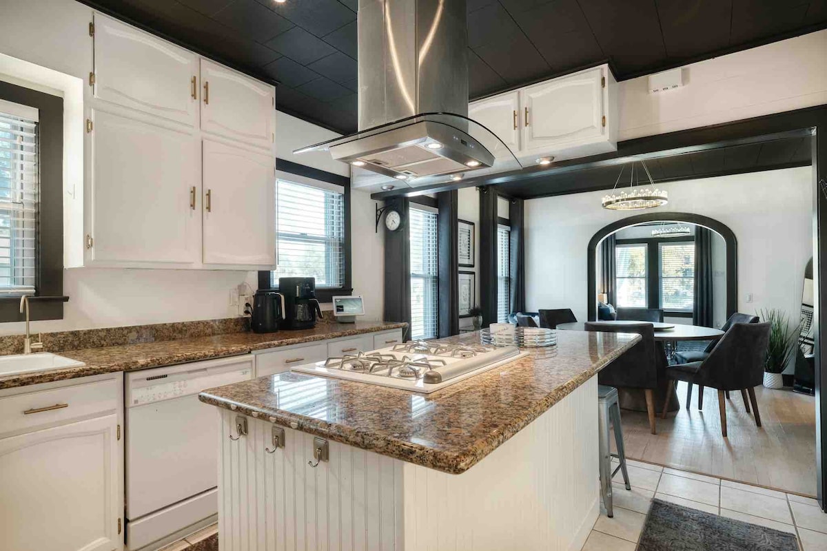 Vychutnejte si eleganci a luxus tohoto jedinečného domova. Vyberte si mezi snídaní v nóbl jídelně nebo venku na terase, kde si užijete sluneční svit. Udělejte si krátkou procházku dolů na pláž, která je vzdálena pouze 0,6 km a v blízkosti mnoha skvělých restaurací!Televize s Hulu a Amazon Prime a velký výběr stolních her vás zabaví. Elegantní, funkční a dobře vybavená kuchyně vám usnadní přípravu jídla, zatímco Alexa Echo Show přehraje hudbu podle vašeho výběru.