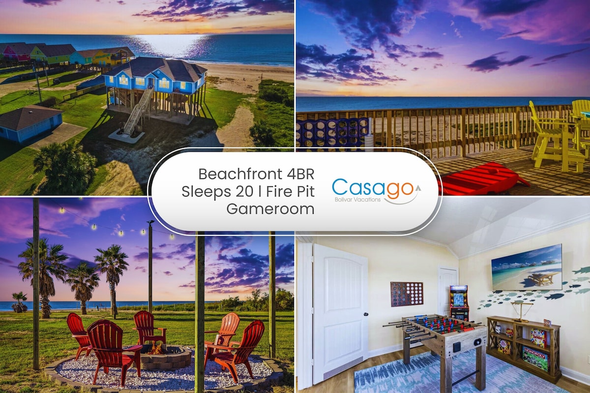 4BR Beachfront | Firepit, Gameroom, Sleeps 20!