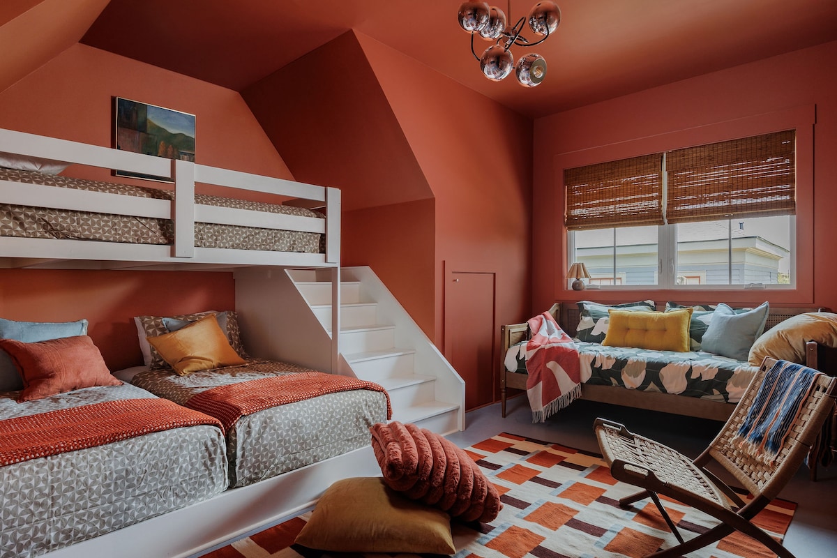 Vzácná lokalita v Galvestonu, která je jen dva bloky od pláže a také velmi blízko historického centra. Atmosféra je klidná a dobře navržená, včetně luxusních produktů EO Hair & Body. K dispozici je ohniště s grilováním a možnost prozkoumat ostrov na klasických jízdních kolech. Tvůj pobyt zahrnuje několik studených Topo Chicos a čerstvé pomeranče pro lis na džusy. Staň se Eastenderem! Hostitelé jsou Aly a Stephen – umělci z Maine a Houstonu.