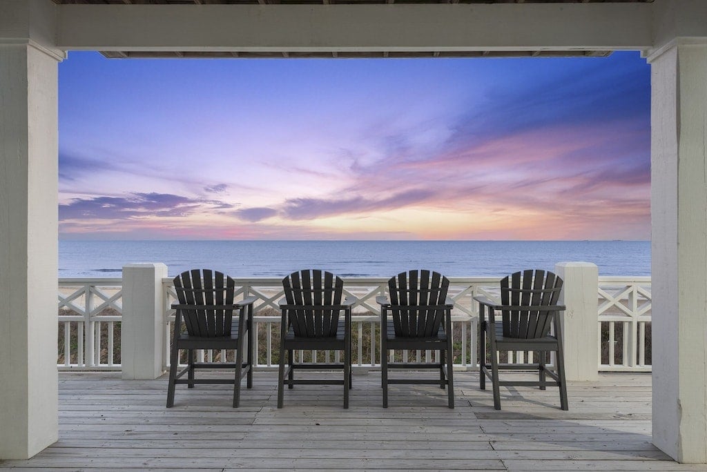 Casa Courageous is located in a quiet beachfront neighborhood on Galveston's West End. There is direct beach access with a 1 min walk over the pedestrian bridge to the water. The beach is closed to vehicles, providing a safe, calm environment for your group to explore. This renovated home has been transformed into a modern beachfront oasis that design lovers will appreciate, with wraparound balconies that provide unobstructed ocean views from both sides of the house.